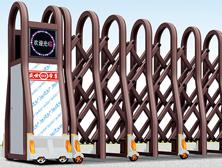 电动伸缩门特色 伸缩门的作用和特点 1、智能红外线防爬装置:遇人爬门时,系统会马···